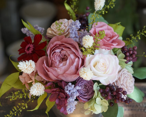 プリザーブドフラワー くすみピンク アレンジメント くすみカラー PR-003 プリザーブドフラワーアレンジメント(ピンク)